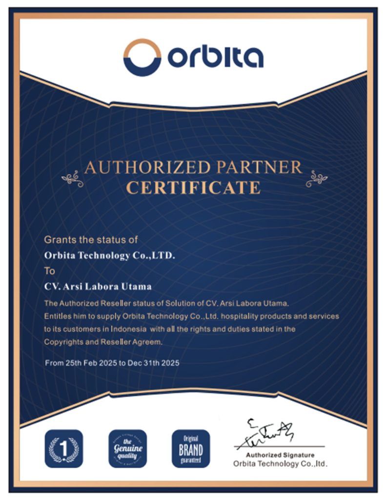 Pada tahun 2025, CV. Arsi Labora Utama dipercaya oleh Orbita Tech sebagai Distributor Resmi di Indonesia untuk produk Smart Lock dan Smart Hotel System.